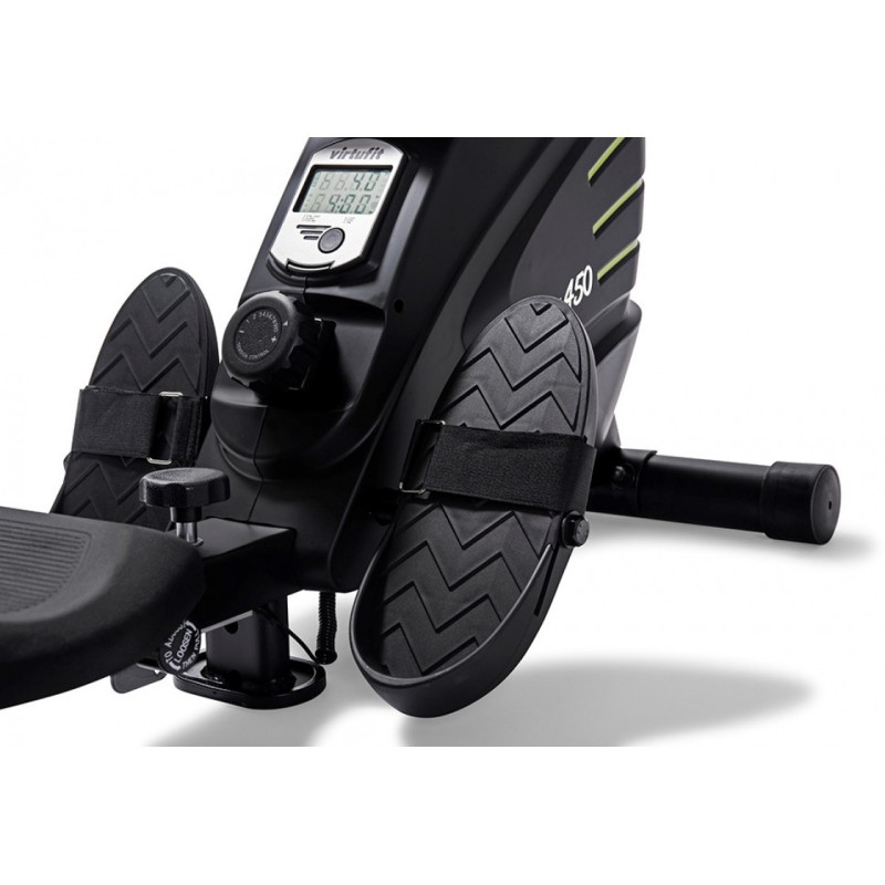 Η κωπηλατική VirtuFit 450 έχει σχεδιαστεί για να προσφέρει την απόλυτη εμπειρία κωπηλασίας, καθώς πρόκειται για την καλύτερη επιλογή για άνετη και ποιοτική προπόνηση. Χρησιμοποιώντας μήκος ράγας 94 cm και 5.5 kg τροχό παρέχει ομαλή, άνετη και αποτελεσματική άσκηση. Με 10 επίπεδα αντίστασης, η κωπηλατική βοηθά στην τόνωση των χεριών, των ποδιών, της κοιλιάς και των μυών στους ώμους, ενώ συμβάλλει σε μεγάλο βαθμό στη βελτίωση της καρδιαγγειακής απόδοσης. Ένα ακόμη βασικό πλεονέκτημά της είναι ότι δεν πιέζει την πλάτη και τις αρθρώσεις ανακουφίζοντας αυτές τις περιοχές από την ένταση, καθώς η άσκηση που παρέχει είναι αισθητά λιγότερο επίπονη σε σχέση με άλλες προπονήσεις.